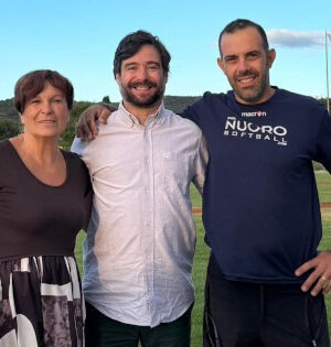 Nella foto Di Nolfo, con il presidente dell’ASD Los Amigos Olmedo Baseball Domenico Cuggia e la vicepresidente Maria Salaris