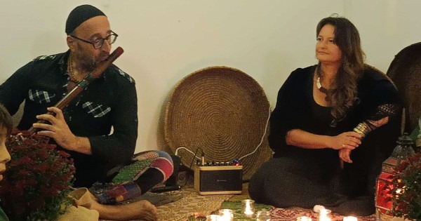 Durante il Cammino, in collaborazione con Musa Madre, è stata organizzata una cena tra i vicoli di pietra, una esposizione di artigiani/e locali e una suggestiva esperienza performativa di narrazione musicata notturna alla fonte sacra. Il maestro Uselli ha dialogato magistralmente con Cristina Muntoni, coordinatrice del progetto e curatrice della ricerca sulle leggende. Un duo insolito, il flauto bansuri di Uselli e la voce narrante della Muntoni, che ha lasciato tutti col fiato sospeso, creando l’atmosfera giusta in un contesto suggestivo e misterioso.