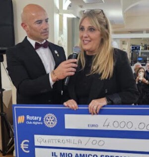 L’assegno di 4.000 euro è stato consegnato ufficialmente dal Presidente del Rotary Club Alghero, l’Avv. Andrea Delias, alla Sig.ra Doriana Caria, Presidente dell’Associazione “Il mio amico speciale”, a testimonianza del concreto impegno del Club a favore delle realtà locali più fragili.